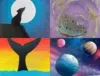 Selbst gestaltete Schablonen werden auf Leinwände gesprayt.